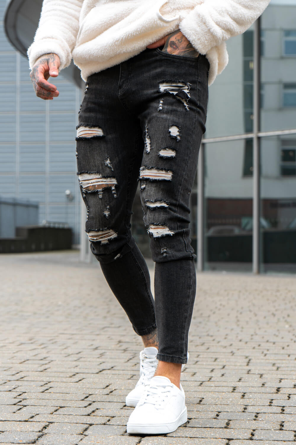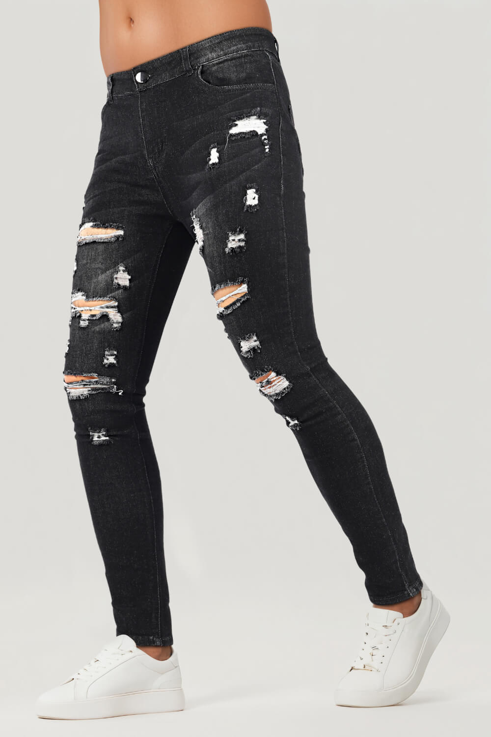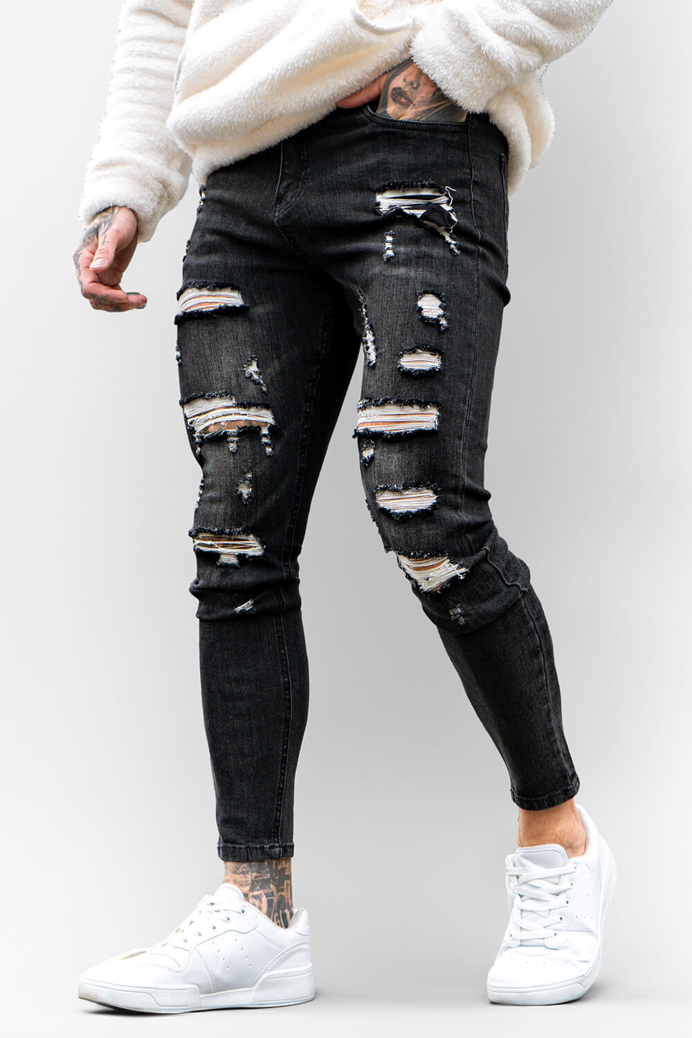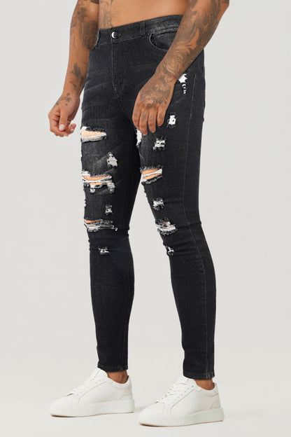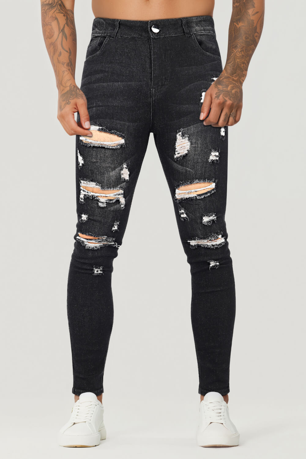 Super Stretch Skinny Jeans für Herren – Zerrissen & Schwarz