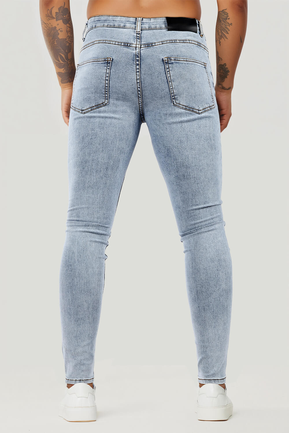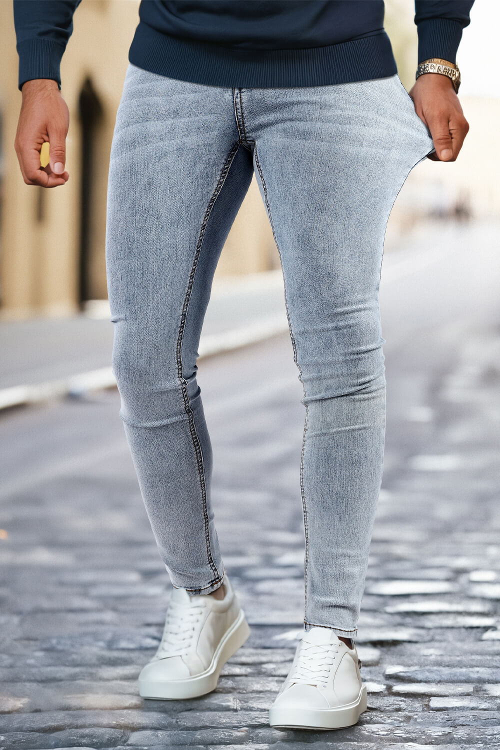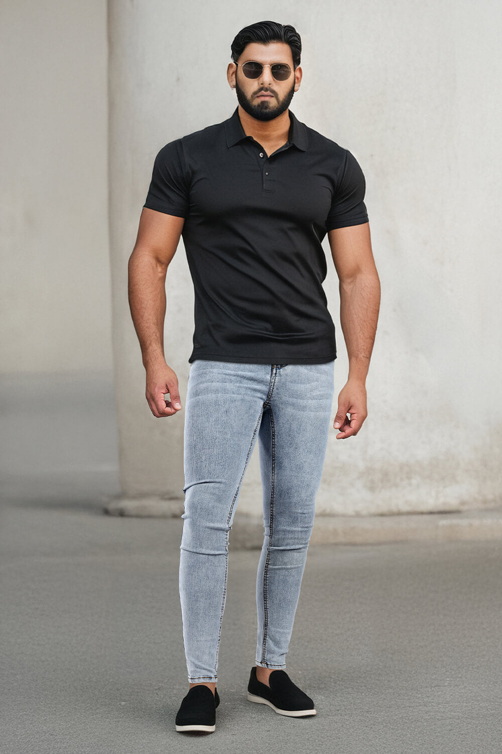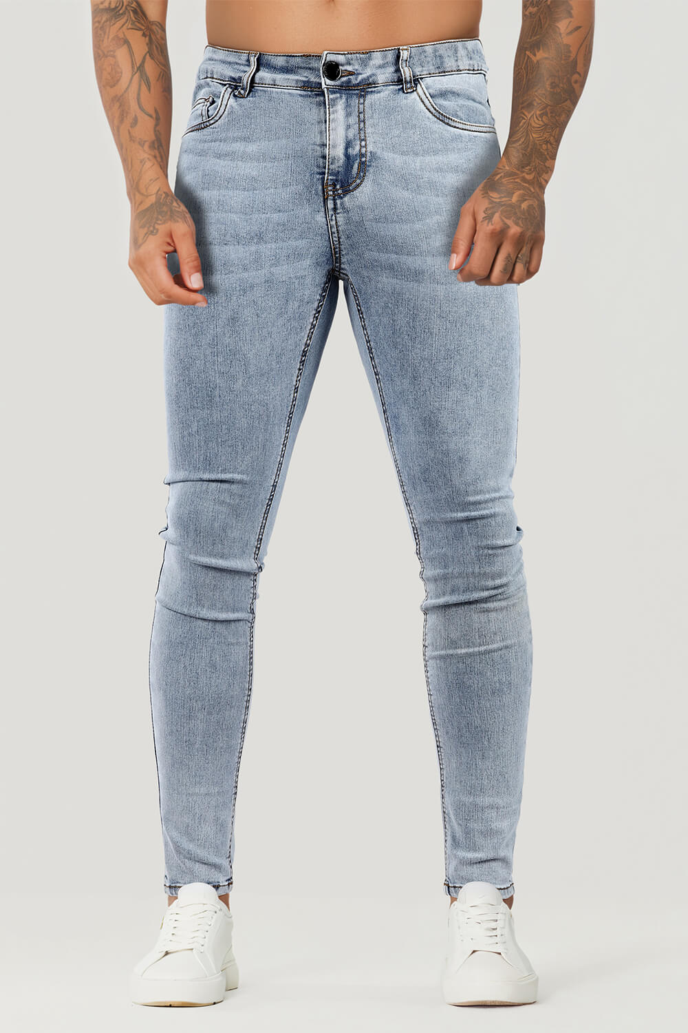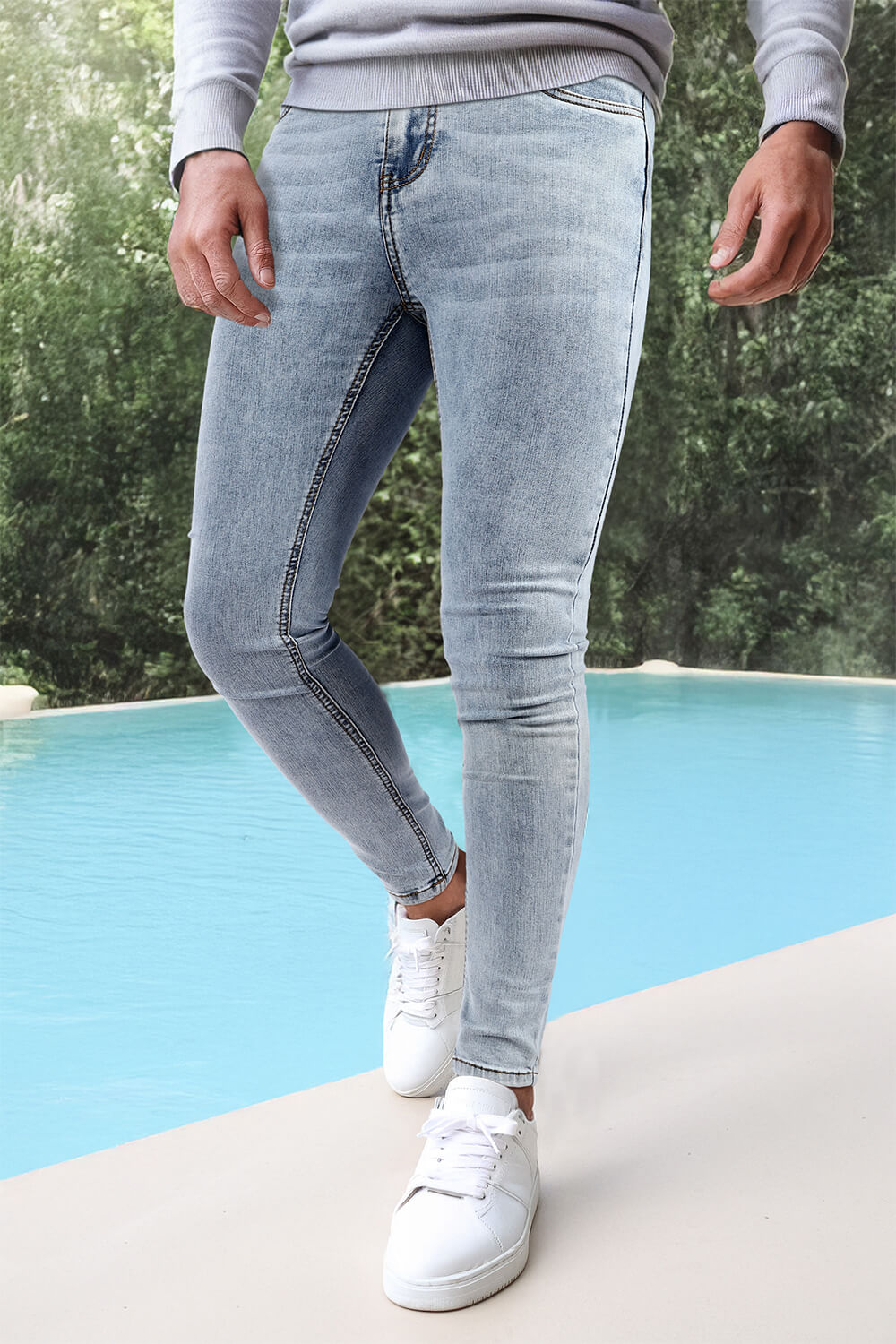 Super comfortable and high-stretch denim jeans designed with a form-flattering, muscular thighs fit. Our men's skinny jean fit your lower body to wear all day long and can be paired with our popular basic tops.