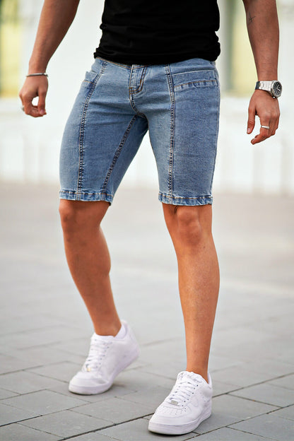 Los shorts de mezclilla elastizados para hombre son una herramienta de moda indispensable para los hombres urbanos. El diseño clásico crea un estilo moderno y elegante.