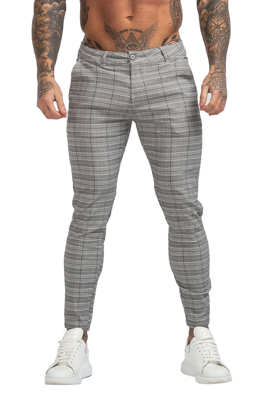 GINGTTO Jeans ajustados hasta la rodilla para hombre Jeans elásticos azul claro