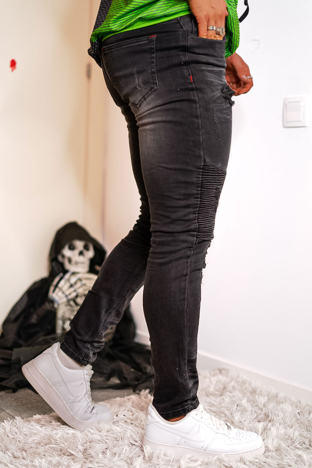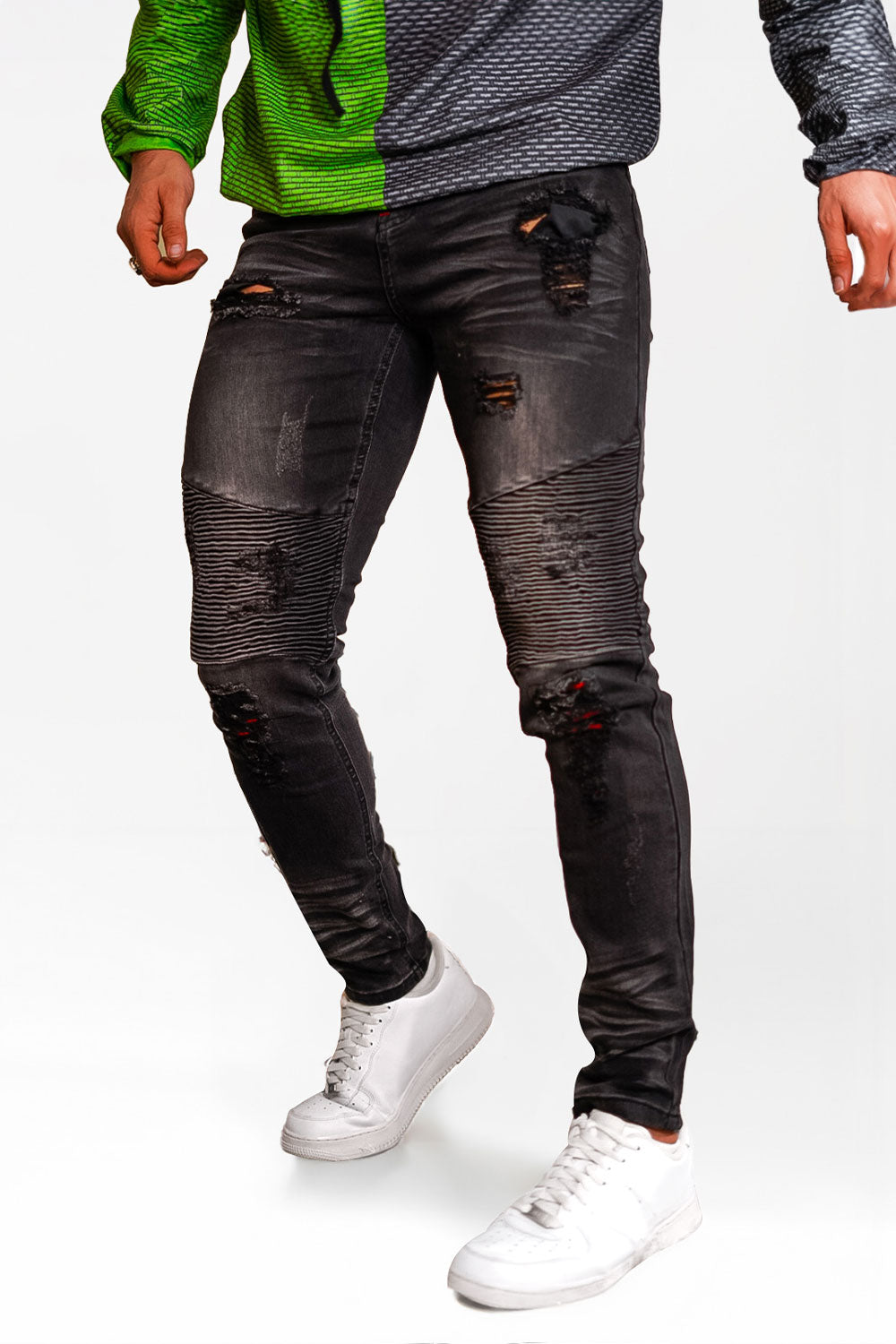 Vaqueros pitillo negros de cintura alta para hombre - Rotos