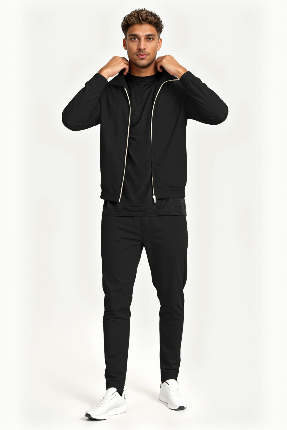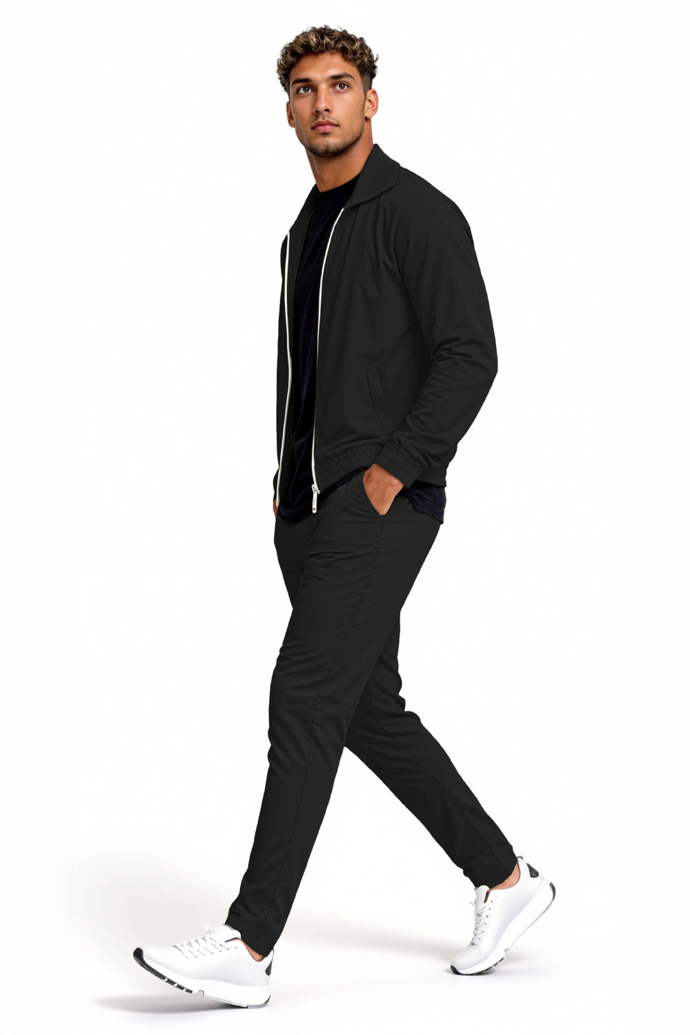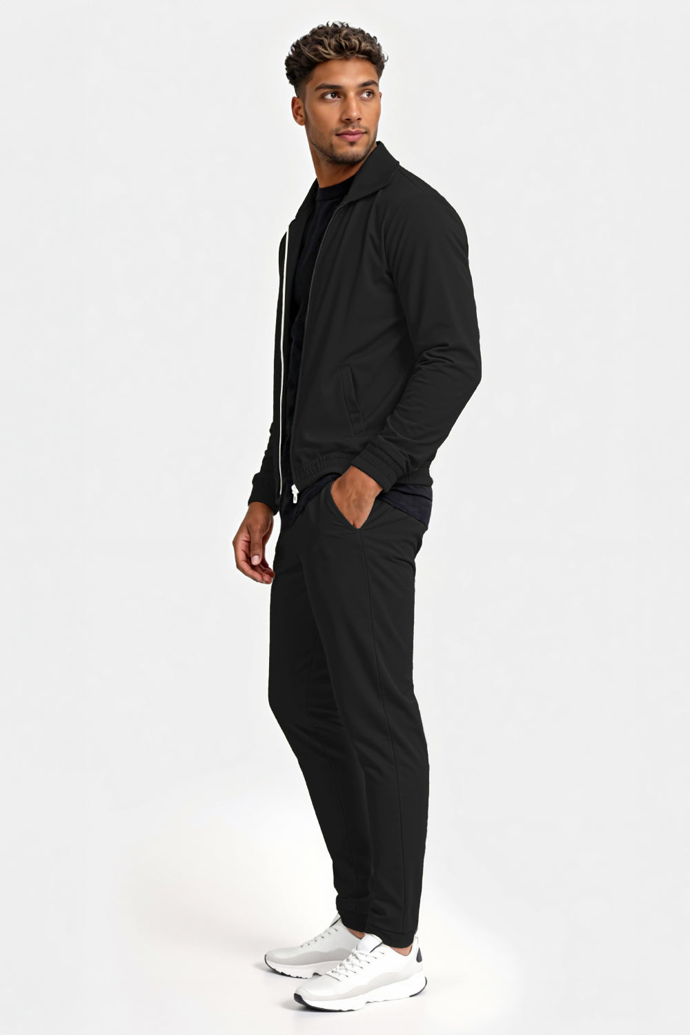 Notre survêtement noir pour homme est le mélange parfait entre style et confort. Cet ensemble polyvalent est parfait pour les sorties décontractées et constitue également la tenue idéale pour vos entraînements et vos routines de fitness. Restez élégant et confortable, que vous soyez en déplacement ou que vous transpiriez.
