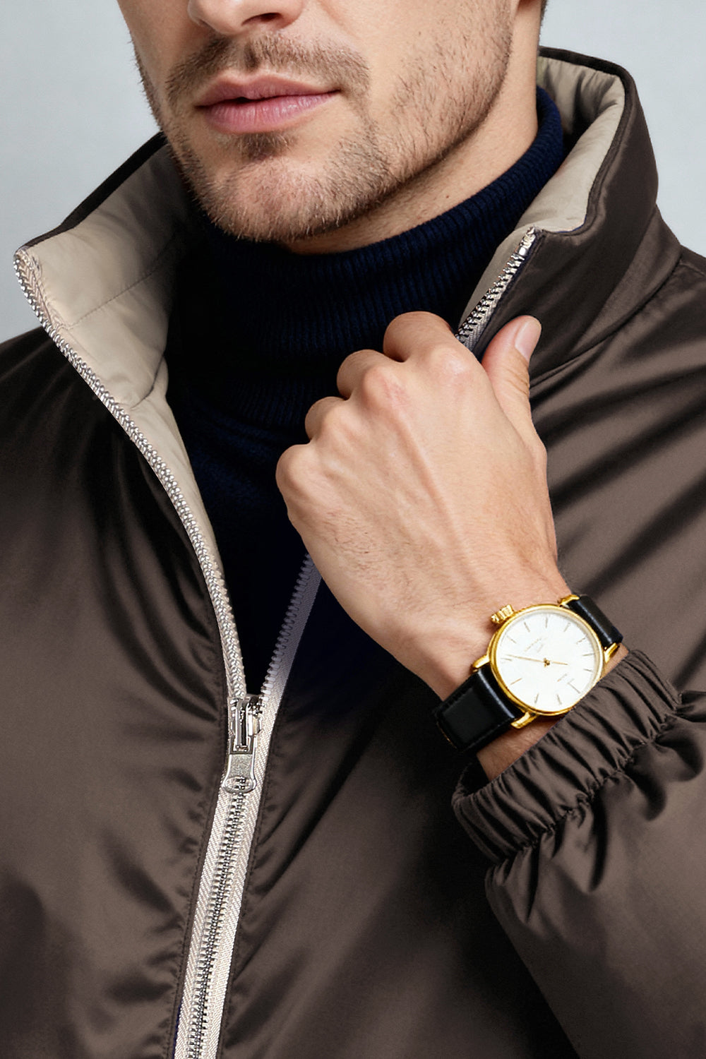 A modern essential for the stylish man’s cold-weather wardrobe. Expertly crafted from high-quality materials, this reversible quilted coat offers versatile style and dependable warmth without restricting movement. Insulated with soft cotton padding on both sides, it ensures consistent comfort while maintaining a streamlined silhouette.