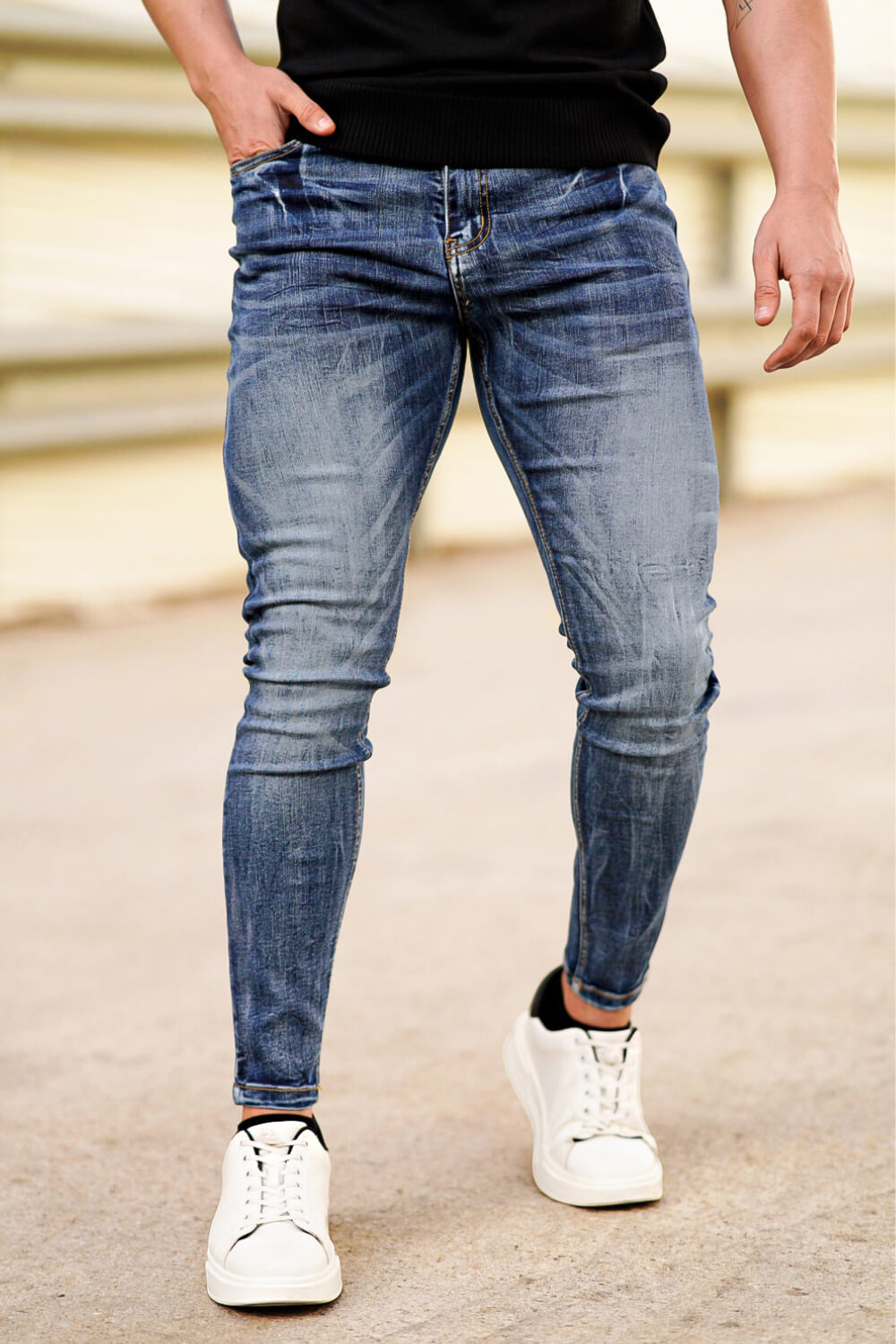Jean en denim super confortable et très extensible, conçu avec une coupe flatteuse et musclée au niveau des cuisses. Nos jeans skinny stretch pour hommes s'adaptent au bas de votre corps pour être portés toute la journée et peuvent être associés à nos hauts basiques populaires.