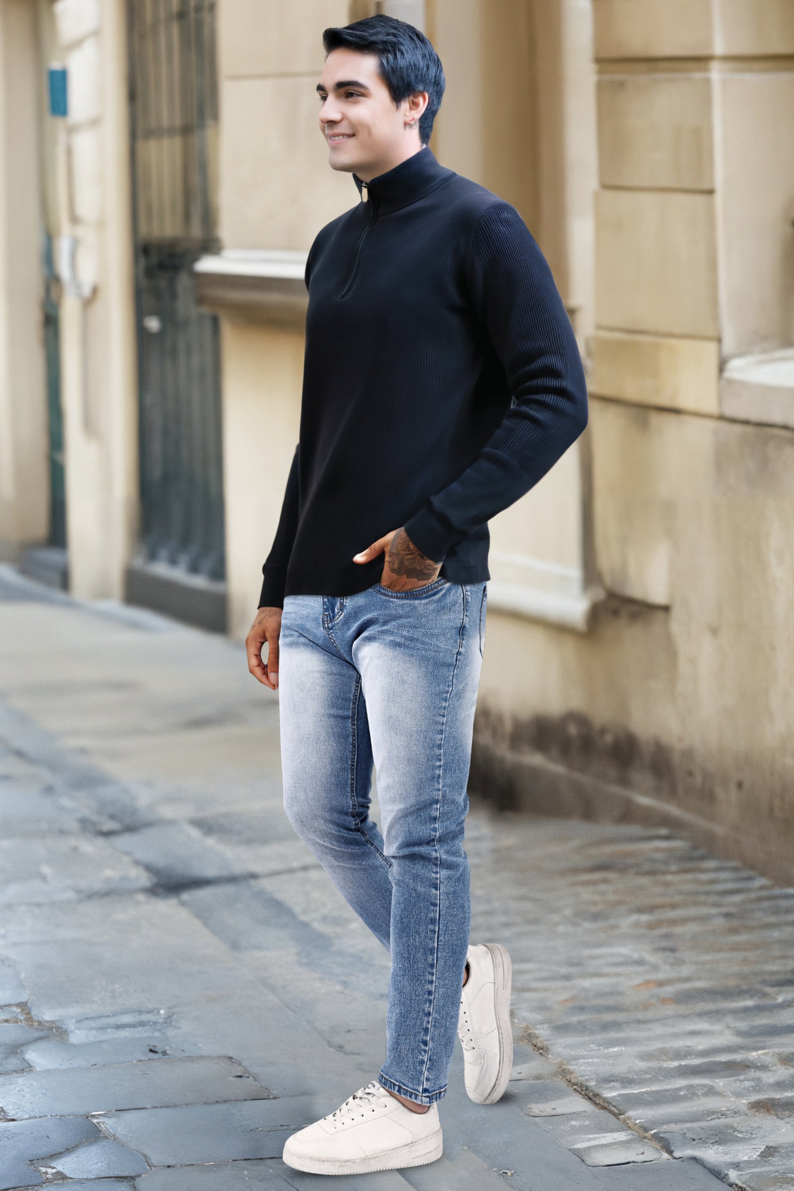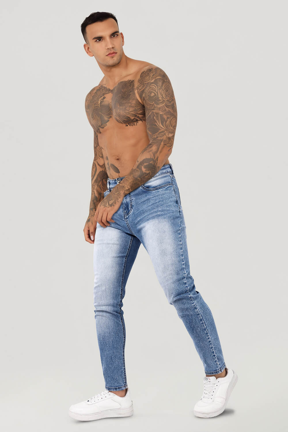 Jean en denim super confortable et très extensible, conçu avec une coupe flatteuse et musclée au niveau des cuisses. Nos jeans skinny stretch pour hommes s'adaptent au bas de votre corps pour être portés toute la journée et peuvent être associés à nos hauts basiques populaires.