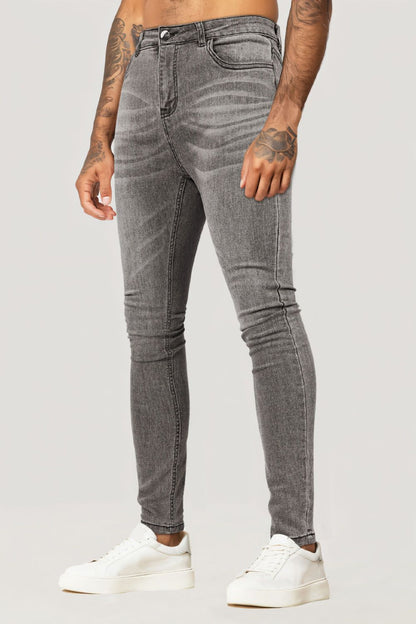 Jean skinny à fermeture éclair pour hommes - Gris et délavé