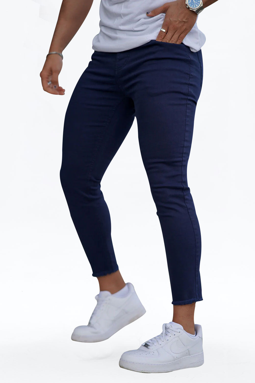 Jean en denim super confortable et très extensible, conçu avec une coupe flatteuse et musclée au niveau des cuisses. Notre jean skinny bleu marine s'adapte au bas de votre corps pour être porté toute la journée et peut être associé à nos hauts basiques populaires.