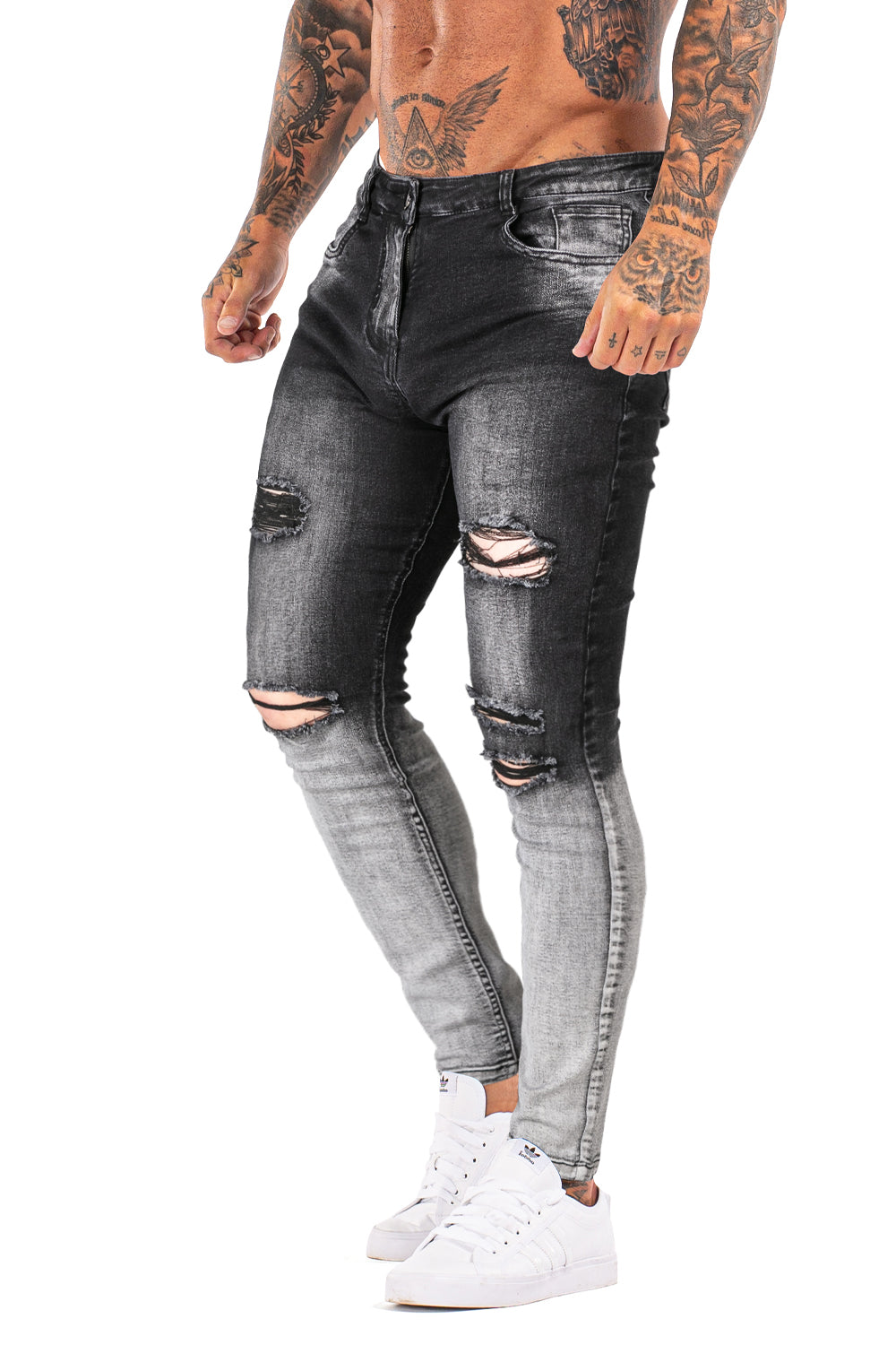 GINGTTO Jean skinny extensible déchiré pour homme, jambe effilée
