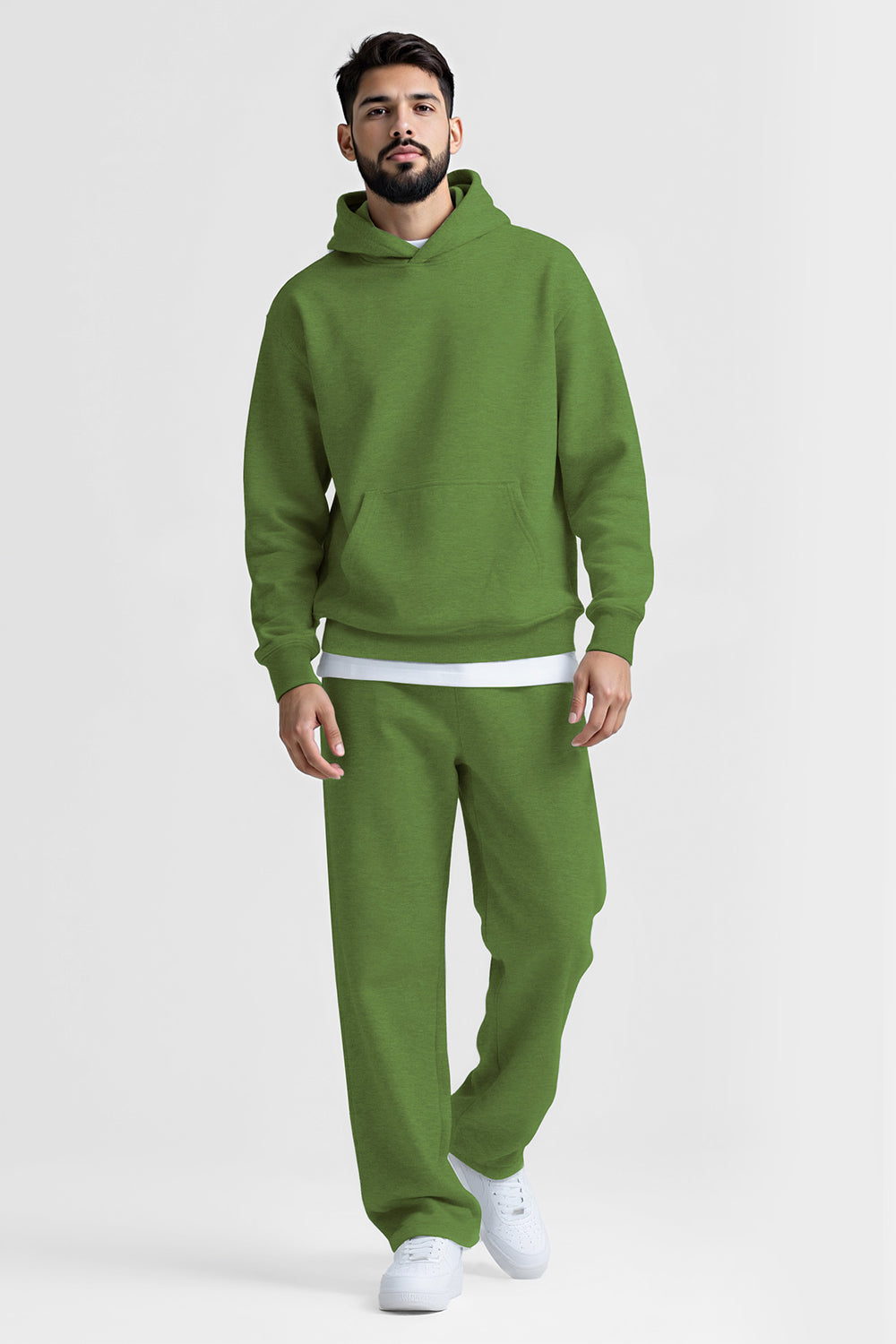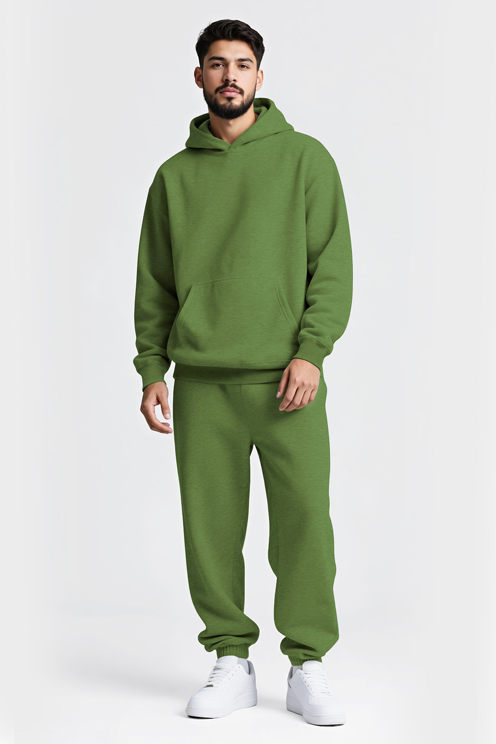Our men's green hoodie set is the ultimate in comfort and style. This versatile set is perfect for casual outings and doubles as the ideal outfit for your workouts and fitness routines. Stay stylish and comfortable, whether you're on the move or breaking a sweat.