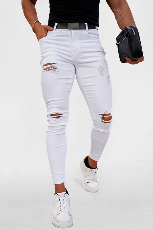 Jeans skinny strappati neri da uomo - Alta elasticità