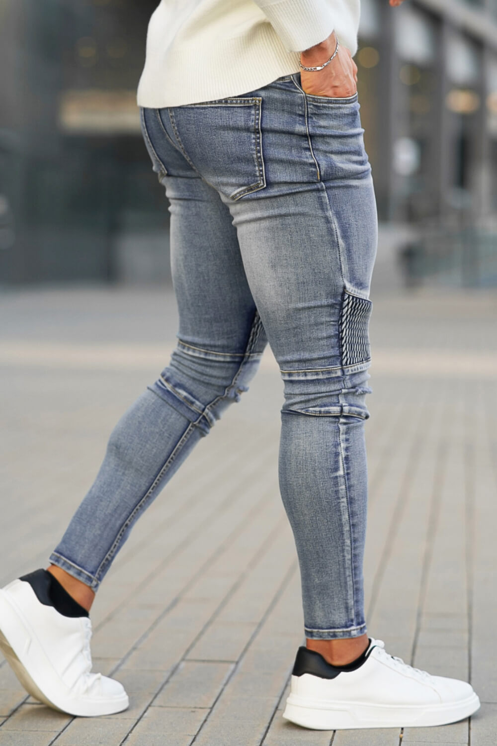Jeans in denim super comodi e altamente elasticizzati progettati con una vestibilità muscolosa e che valorizza la forma delle cosce. i nostri classici blue jeans si adattano alla parte inferiore del corpo per essere indossati tutto il giorno e possono essere abbinati ai nostri popolari top basic.