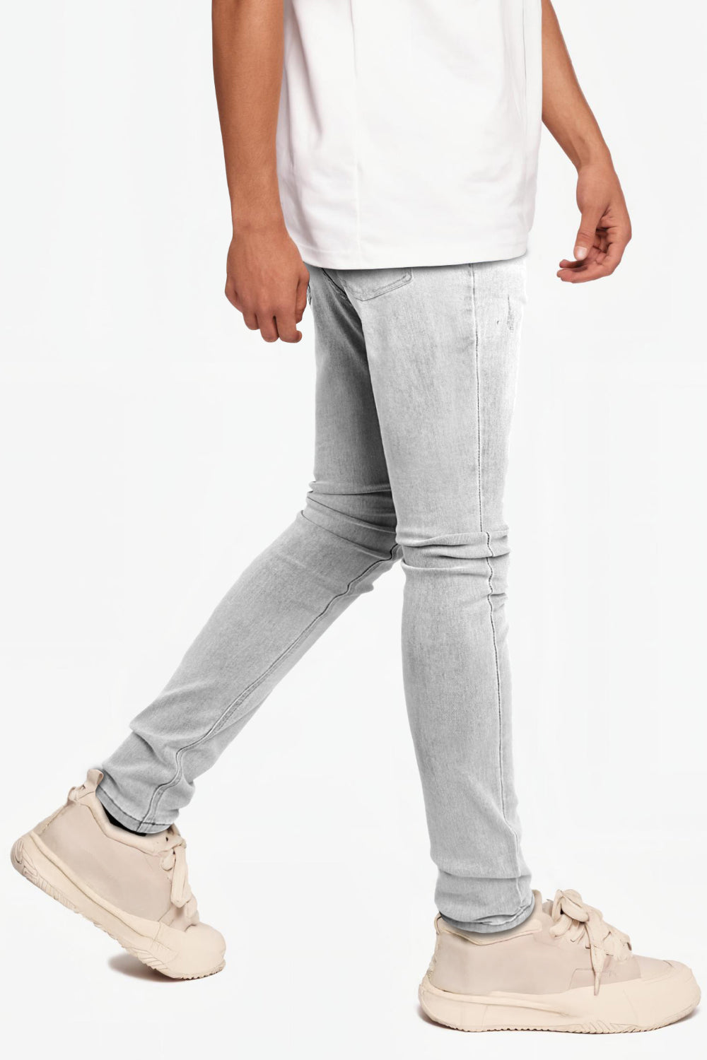Jeans da uomo grigio marmo attillati lavati e strappati