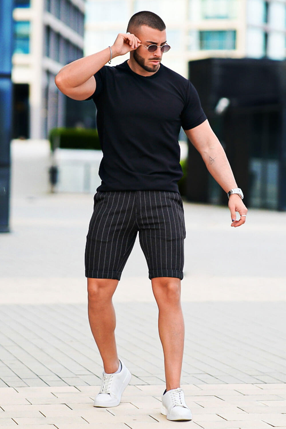 I pantaloncini chino neri da uomo hanno un'eccellente elasticità. Il design fresco e le righe alla moda si completano a vicenda, donandoti un tocco di vitalità e facendoti trasudare fascino nella calda estate.