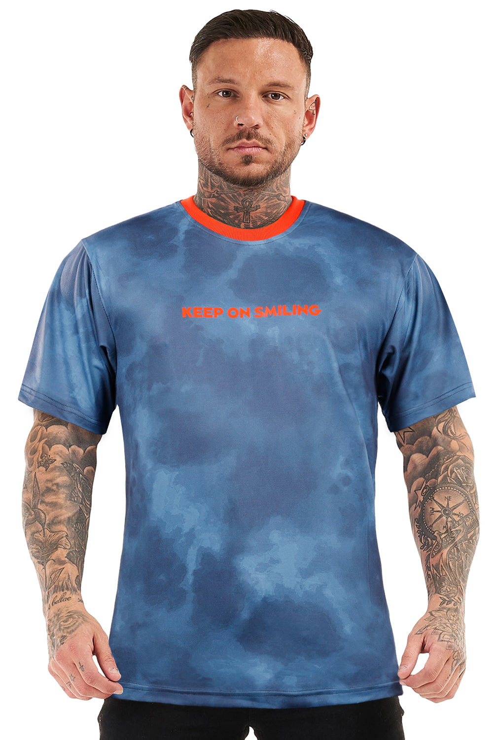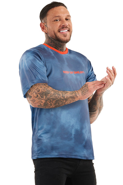 GINGTTO Mens Crew Neck T-shirts-Blue