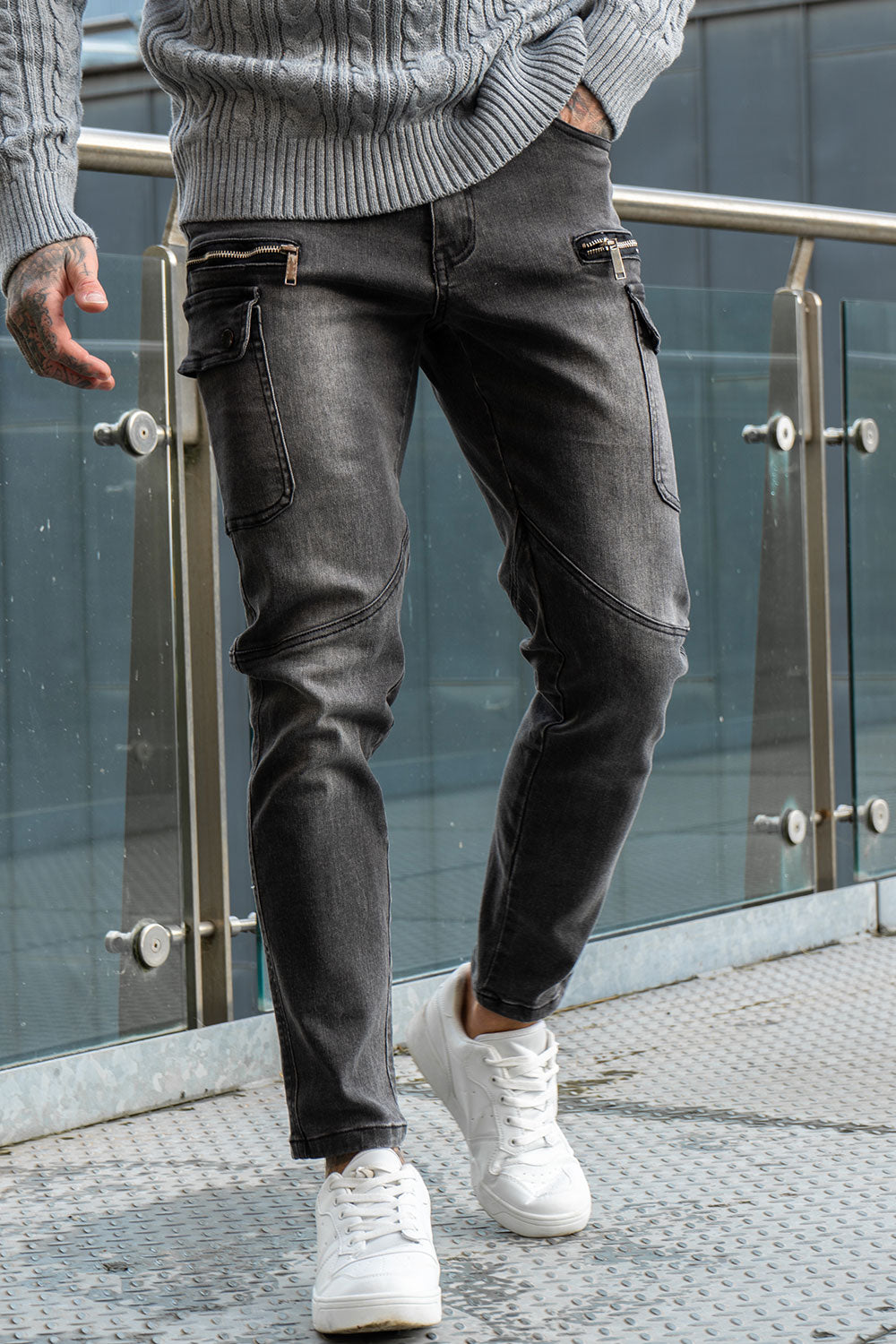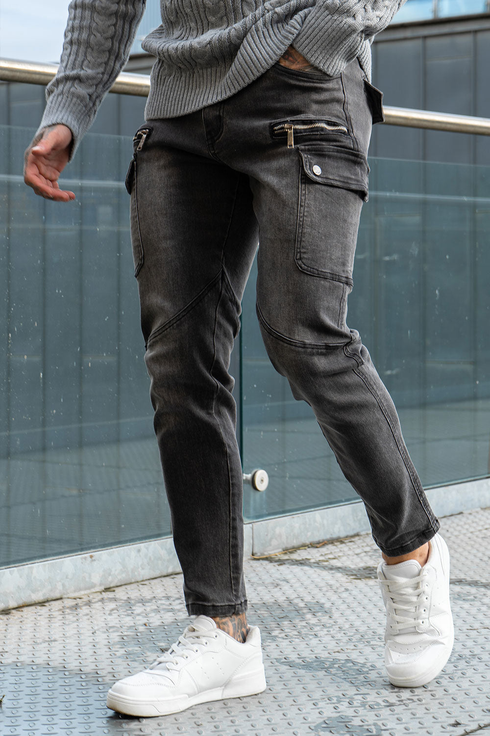 Gray Skinny Jean For Men - Multi Pocket