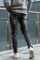 Super comfortable and high-stretch denim jeans designed with a form-flattering, muscular thighs fit. Our gray skinny  jeans mens fit your lower body to wear all day long and can be paired with our popular basic tops.