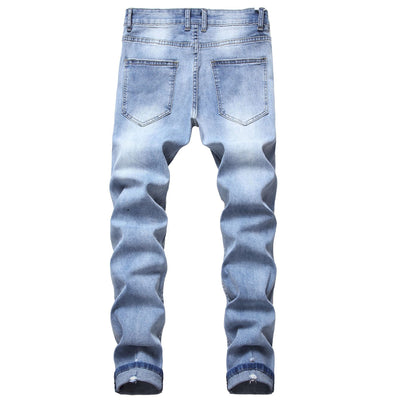 Men's blue patch ripped jeans