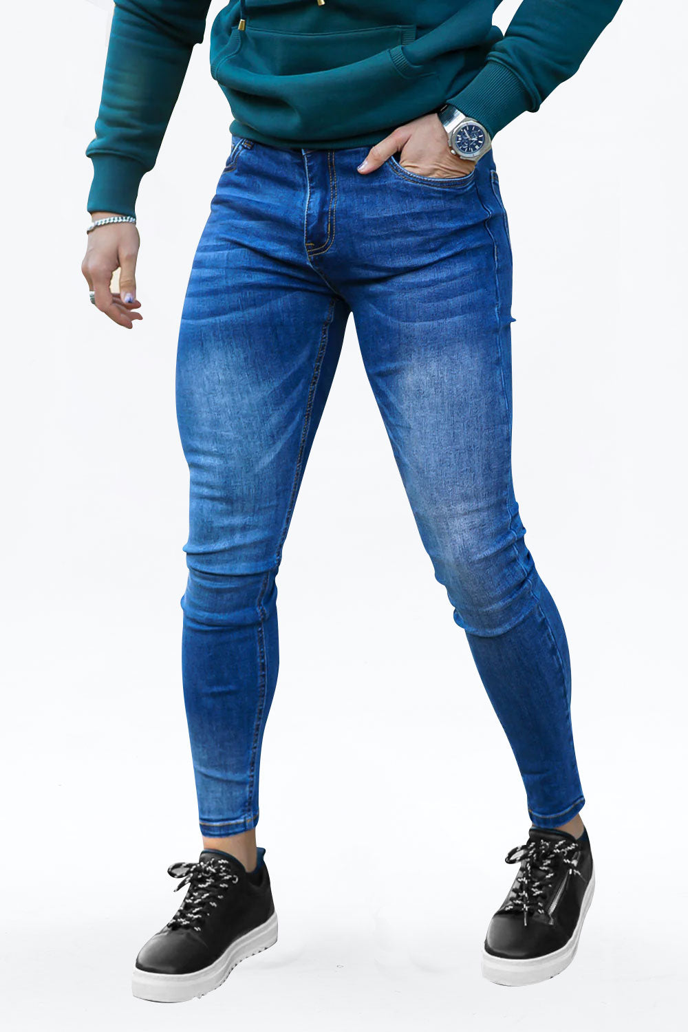 スーパー スキニー フィット ジーンズ メンズ ブルー ストレッチ ジーンズ