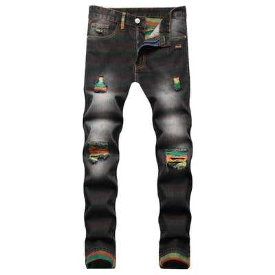 AanbiedingGescheurde patchwork zwarte herenjeans