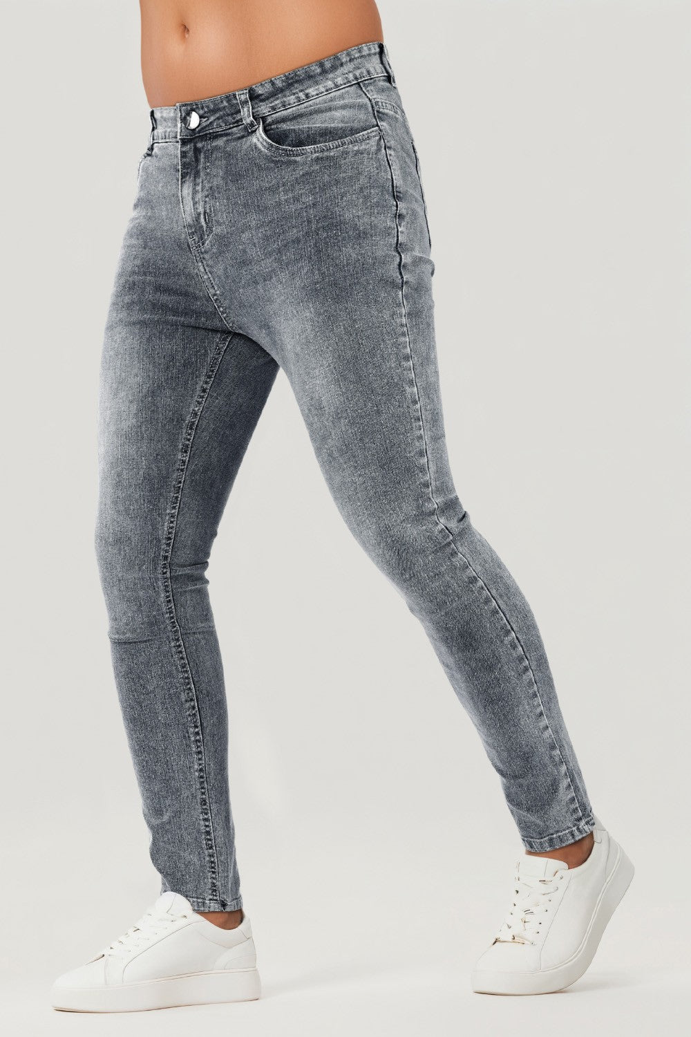 Super comfortable and high-stretch denim jeans designed with a form-flattering, muscular thighs fit. Our stretch skinny jeans fit your lower body to wear all day long and can be paired with our popular basic tops.