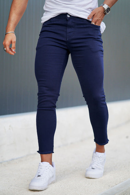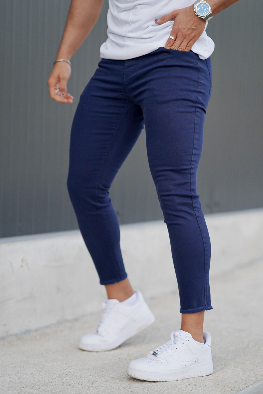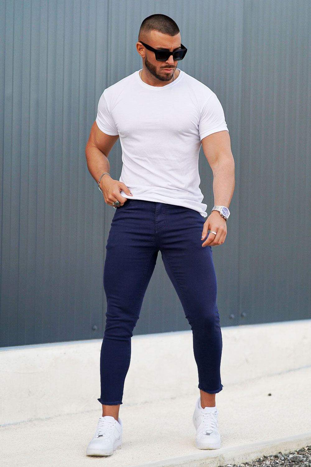 Super comfortable and high-stretch denim jeans designed with a form-flattering, muscular thighs fit. Our Navy blue skinny jeans fit your lower body to wear all day long and can be paired with our popular basic tops.