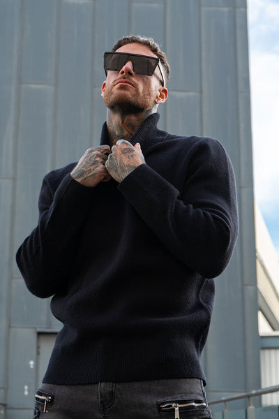 Suéter masculino GINGTTO slim fit gola alta de malha suéter pulôver-preto