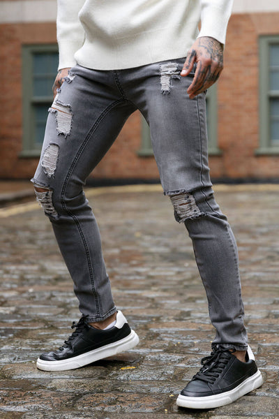 Men‘s Ripped Washed Skinny Marble Grey Jean
