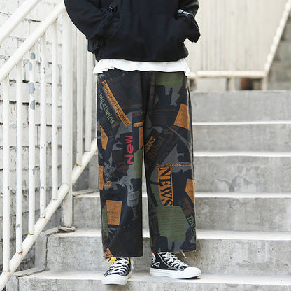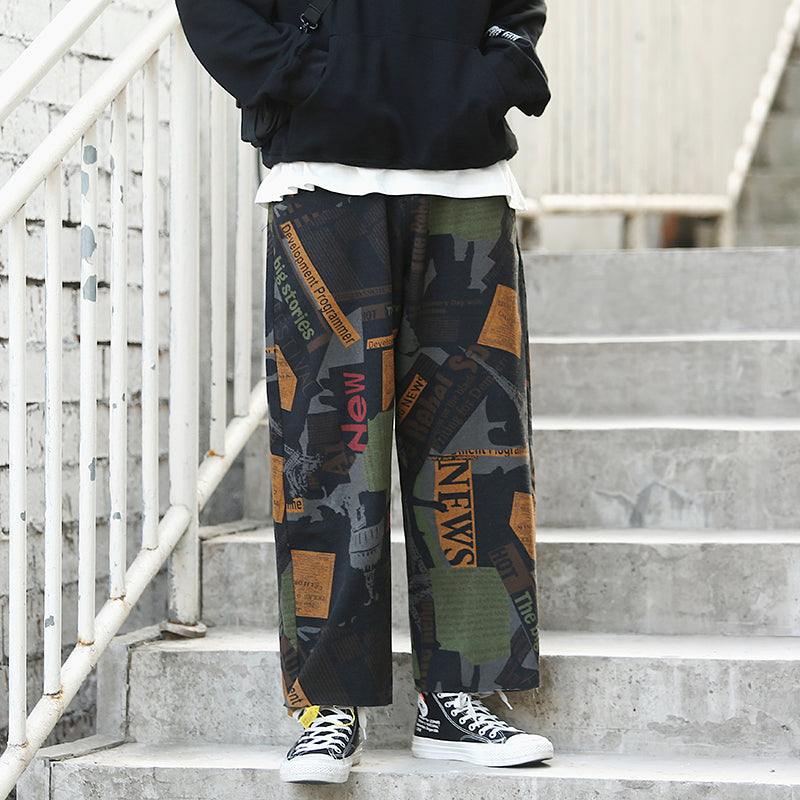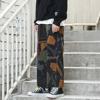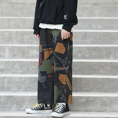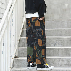 Printed Knit Jeans Straight Hair Edge Retro Stretch Culottes