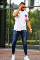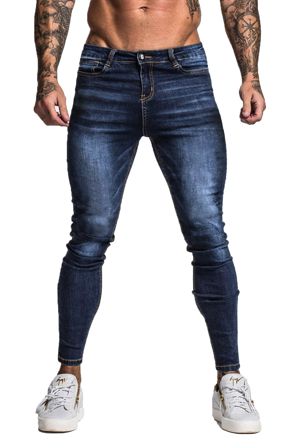 Super comfortable and high-stretch denim jeans designed with a form-flattering, muscular thighs fit. our super stretch skinny jeans fit your lower body to wear all day long and can be paired with our popular basic tops.