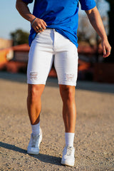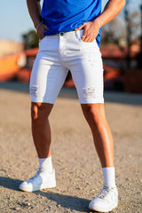 Men's white denim shorts show fresh summer charm. The fashionable slim fit and high-quality denim fabric allows you to maintain a sense of fashion while feeling cool and relaxed in the hot season.